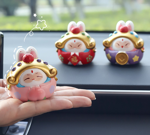 国潮兔儿爷创意礼物市集车载内饰树脂中控台汽车摆件