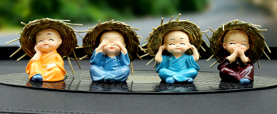 草帽四不和尚汽车摆件微景观装饰醉拳功夫车载摇摆和尚树脂工艺品